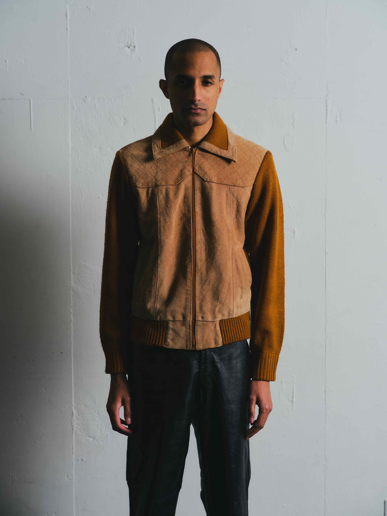LEATHER 100% (FRONT), ACRYLIC 100% (SLEEVES)